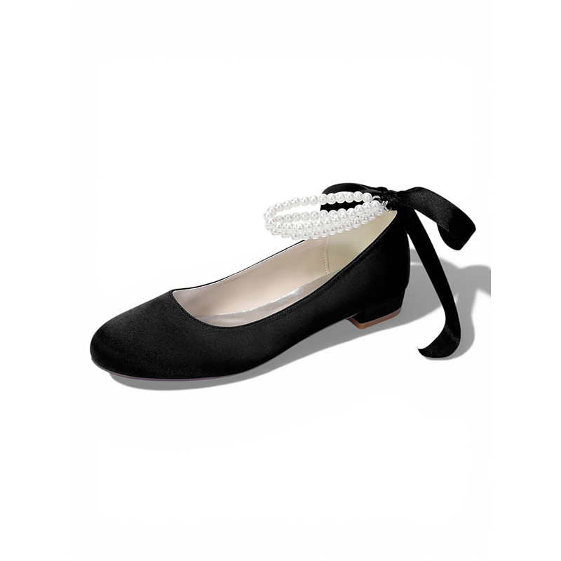 Women's Ivory Pearl Ankle Strap Flats, Elegant Ballet Bridal Shoes for Outdoor Garden Lawn Wedding