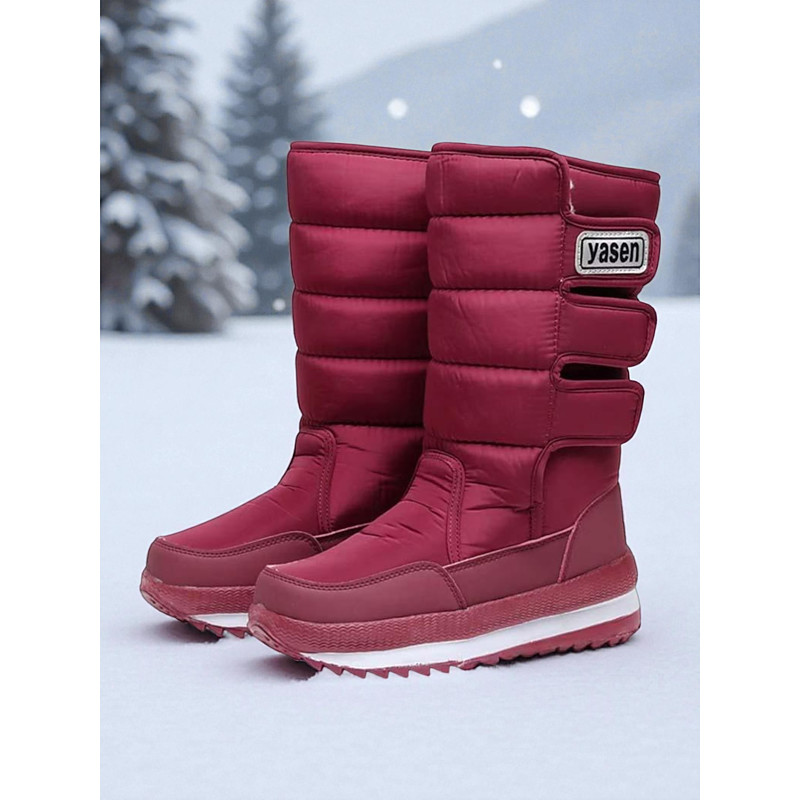 Women's Waterproof Winter Snow Boots - Burgundy Quilted Design with Faux Fur Lining and Adjustable Straps for Outdoor Cold Weather