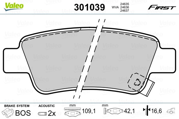 Jarrupalasarja, levyjarru, Taka-akseli Valeo 301039 - honda cr-v iii, cr-v iv - OE 43022SWWG00, 43022SWWG01, 43022-SWW-G01