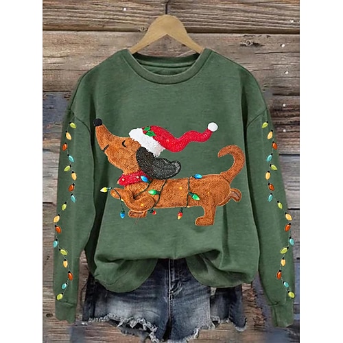 Felpa Natalizia per Donne con Cani Grafica Animale Casual Maniche Lunghe Collo a Giro Collo Rotondo Regolare Top Casa Lavoro Abbigliamento Da Strada Nera Rossa Verde Primavera Inverno