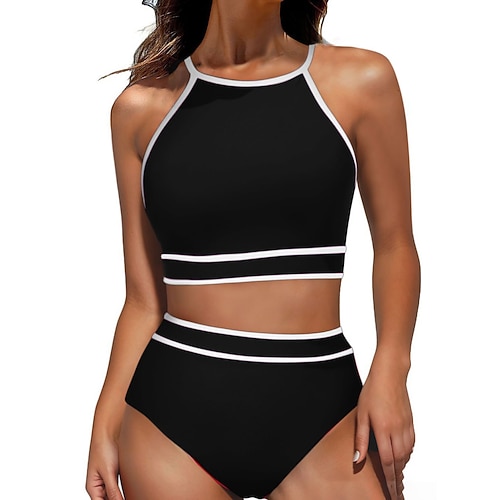 Costume da bagno due pezzi tankini da donna con slip controllo della pancia vita alta slanciato senza schienale abbigliamento da spiaggia per le vacanze floreale collo a giro senza maniche