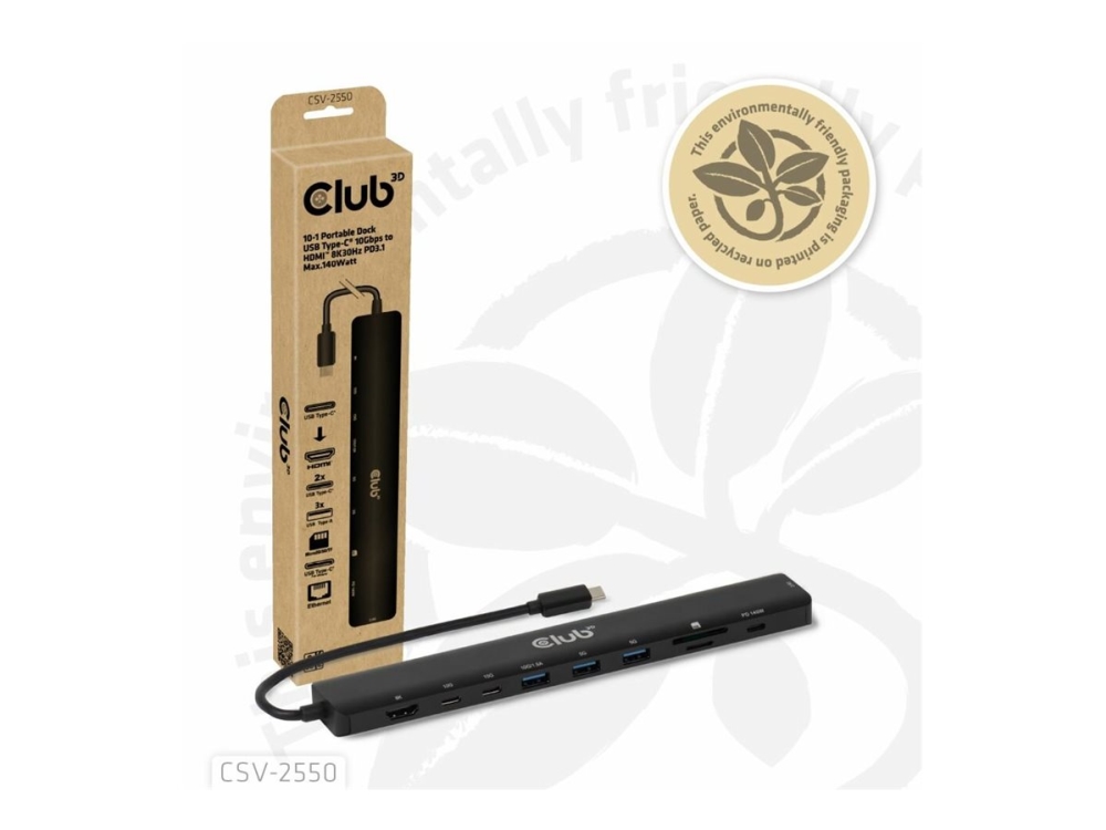 Club3D Portable Docking USB-C -> 2xUSB-C/3xUSB-A/HDMI/SD 140W vähittäiskauppa