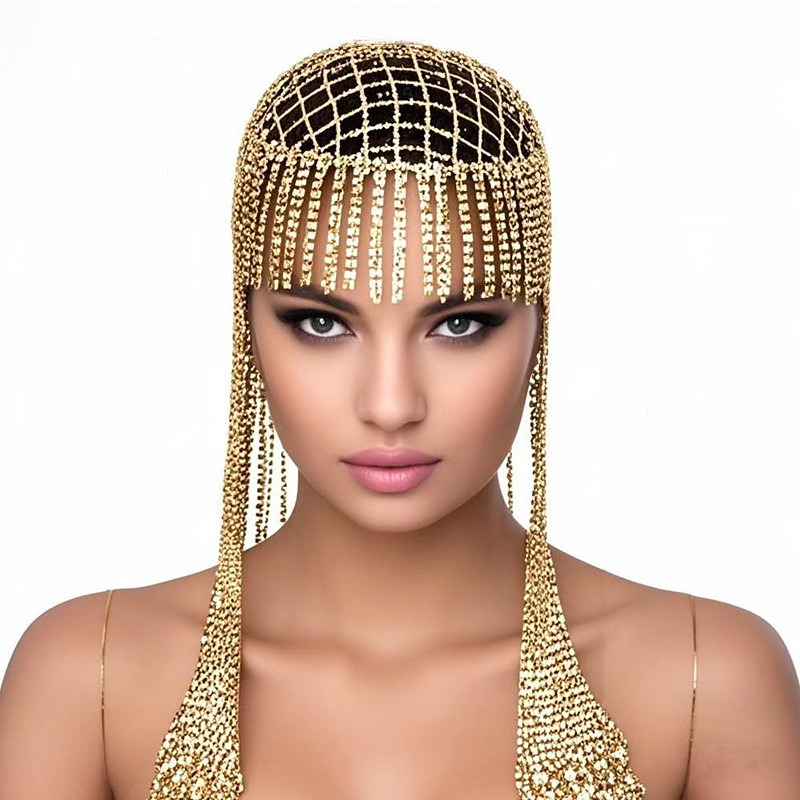 Rio Carnival Samba Accessories Sparkling Crystal Draping Headpiece - Rhinestone Tassel Fringe Head Chain, Rave Festival Hair Jewelry, Party Clubwear Accessory Brazil Festival Performance Costume