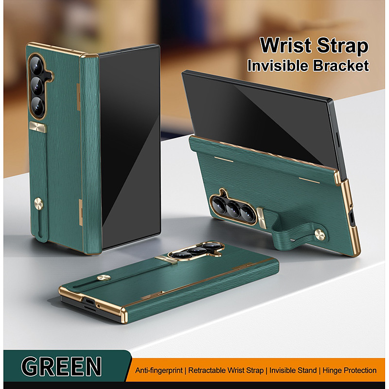 Phone Case For Samsung Galaxy Z Fold 7 Z Fold 6 Z Fold 5 Z Fold 4 Back Cover with Screen Protector with Wrist Strap Shockproof Retro Plating PC