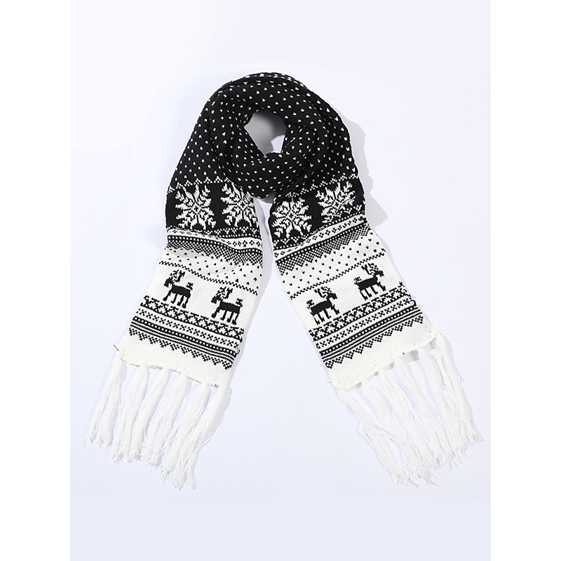 Women's Christmas Knitted Scarf, Acrylic Material, Red and White Fair Isle Pattern with Reindeer and Snowflakes, Festive Winter Accessory for Holiday Parties