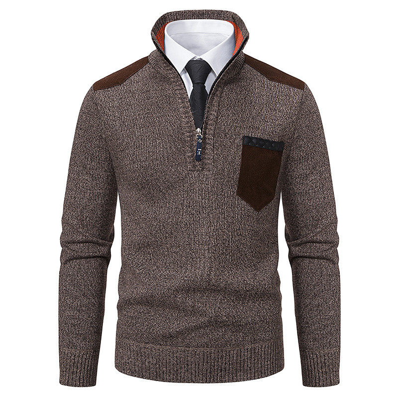 Men's Sweater Chunky Knit Pocket Half Zip Solid Color Stand Collar Elegant Vintage Formal Home Clothing Apparel Bishop Sleeve Fall Winter Red Navy Blue S M L