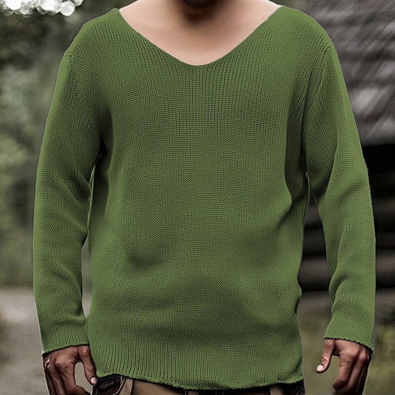 Men's Pullover Sweater Jumper Casual Sweater Knit Sweater Ribbed Crochet Knit Tunic Knitted Plain V Neck Fashion Casual Vacation Daily Wear Clothing Apparel Fall Winter Black Blue S M L