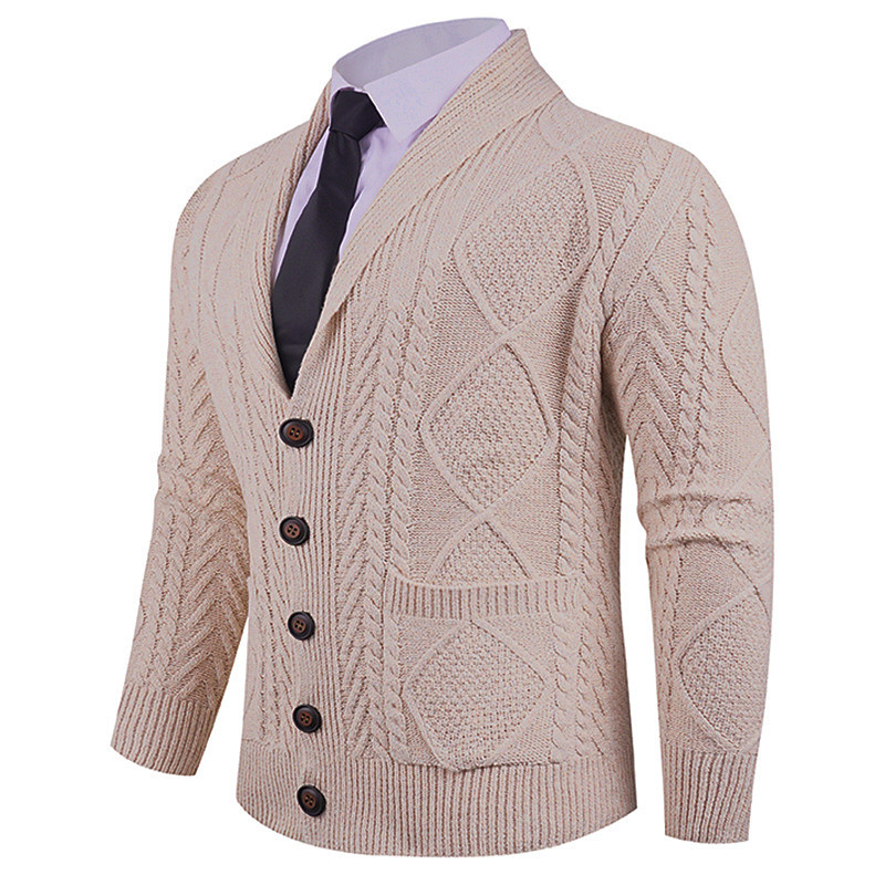 Men's Cardigan Sweater Cropped Sweater Knit Sweater Ribbed Knit Regular Button Up Plain Shawl Collar Warm Ups Modern Contemporary Casual Daily Wear Clothing Apparel Fall Winter Black Blue M L XL