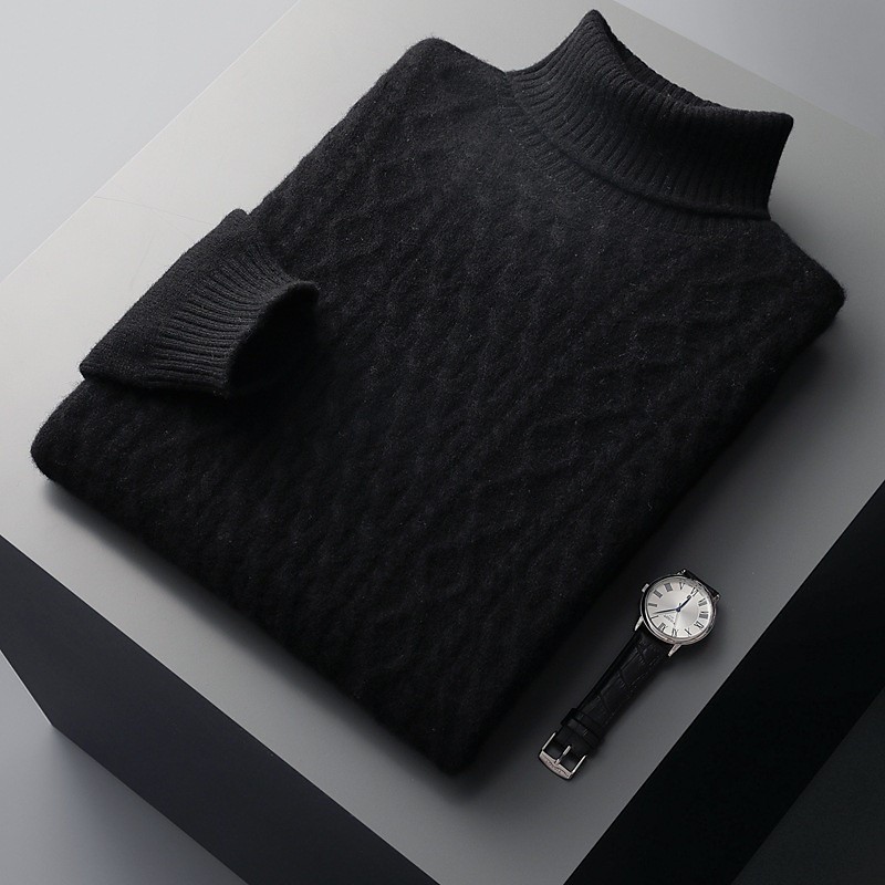 Men's Wool Sweater Knit Sweater Knitted Pullover Ribbed Knit Regular Tops Knitted Plain High Neck Fashion Streetwear Daily Wear Going out Clothing Apparel Fall Winter Blue caramel S M L