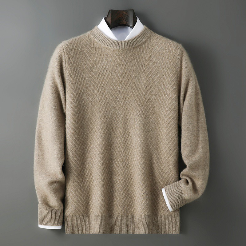 Men's Wool Sweater Knit Sweater Knitted Pullover Ribbed Knit Regular Tops Knitted Plain Crew Neck Fashion Streetwear Casual Daily Wear Clothing Apparel Fall Winter Camel Blue S M L