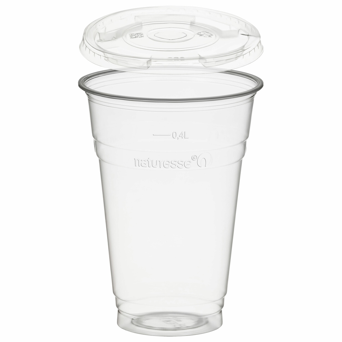VEPATIM 50x BIO Trinkbecher 400ml + Deckel mit Halmstanzung aus Biokunststoff (PLA)