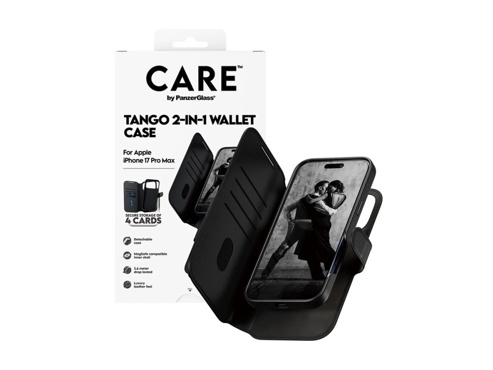PanzerGlass CARE by ® Feature Case Tango Two-in-One Wallet w. MagSafe iPhone 17 Pro Max, Cover, Apple, Apple - iPhone 17 Pro Max, Black