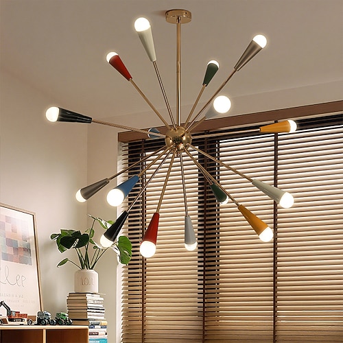 Lampadario sputnik multicolore a 12/16 braccia di metà secolo Lampadario da soffitto in ottone, elegante arredamento per la casa, luce conica multicolore unica
