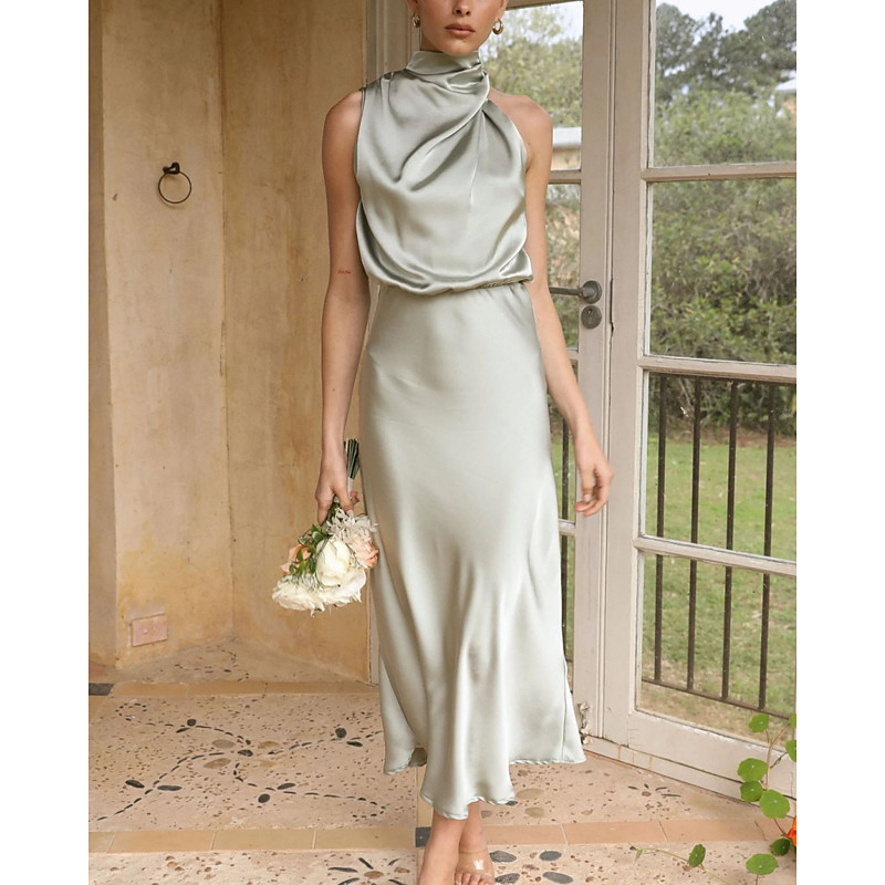 Women's Midi Dress Satin Dress Black Dress Sheath Dress Elegant Fashion Modern Daily Vacation Going out Regular Fit Plain Sleeveless Halter Neck Black Light Green Navy Blue Rose Red Summer Spring