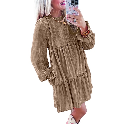 Per donna Mini Abito Abito in Velluto Abiti Peplo Moda Moderno Quotidiano Uscire Weekend Vestibilità comoda Semplice Manica Lunga Girocollo Nero Verde Cachi Rosso rosa Primavera Autunno Inverno