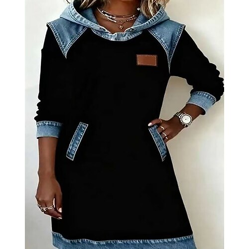 Per donna Mini Abito Abito con Cappuccio Vestito Casual Moda Moderno Quotidiano All'aperto Vacanza Vestibilità regolare Semplice Manica Lunga Con Cappuccio Nero Bianco Giallo Verde Autunno Inverno