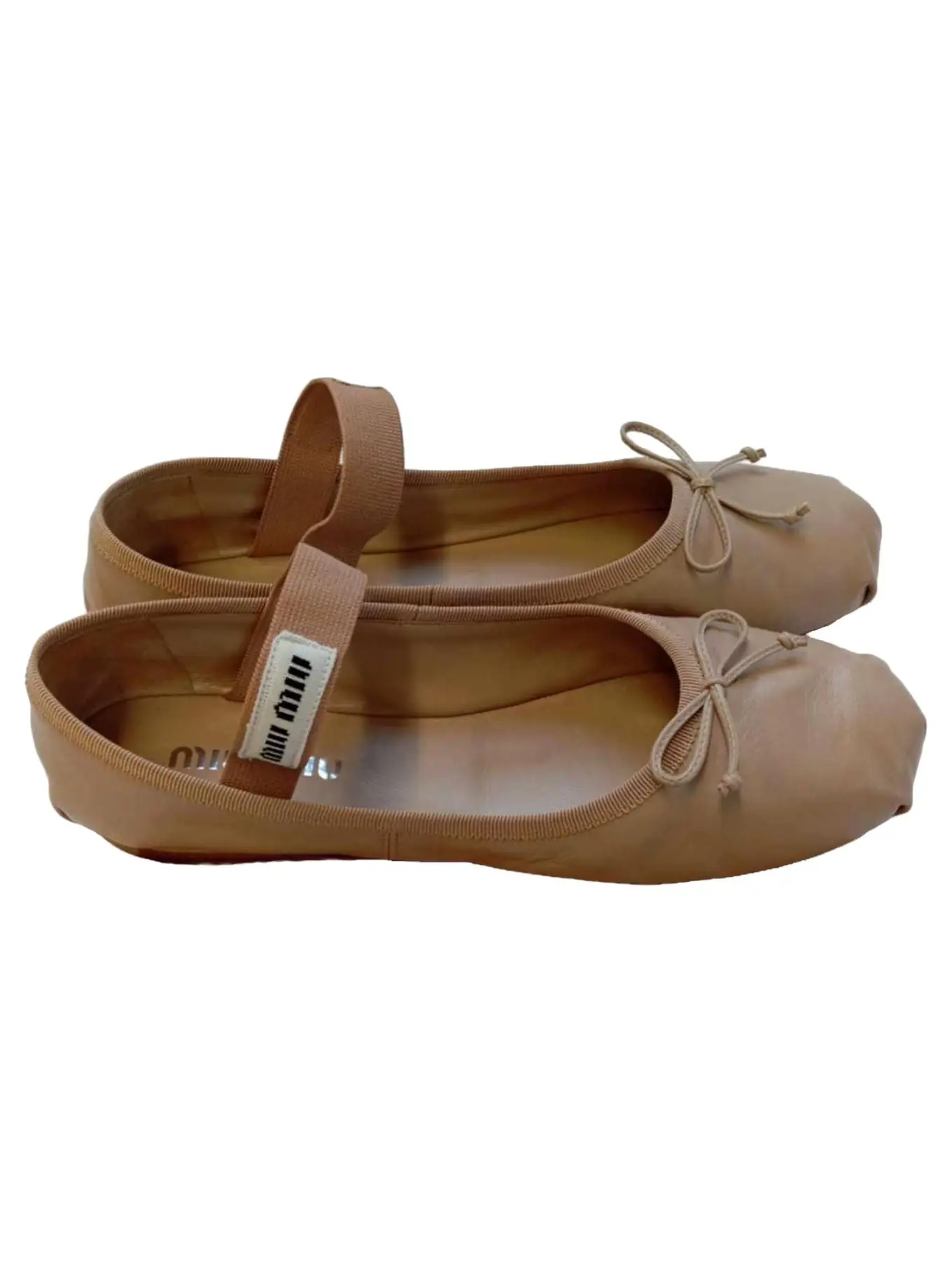 MIU MIU Leather Ballerinas Damen 39 Beige Rosé Elegant