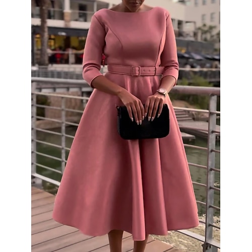 Per donna Abito Midi Abito Bianco Abito da laurea Vestito Casual Elegante Moda Moderno All'aperto Vacanza Feste Vestibilità regolare Semplice Manica Lunga Girocollo Nero Bianco Rosa Rosso Estate