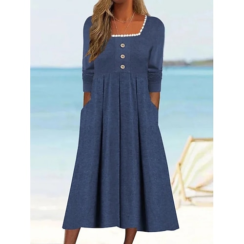 Per donna Abito Midi Abito Bianco Abito da Spiaggia Vestito Casual Elegante Moda Moderno All'aperto Vacanza Uscire Vestibilità regolare Semplice Manica Lunga Collo quadrato Nero Bianco Borgogna Blu