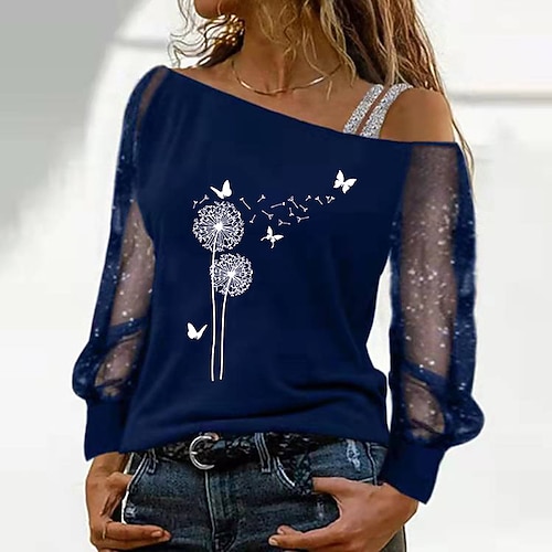 Per donna Blusa Farfalla Vintage Elegante Manica Lunga Top con spalle scoperte Top Regolari Quotidiano Ferie Uscire Pizzo Rete Nero Vino Blu Viola Verde Primavera Autunno