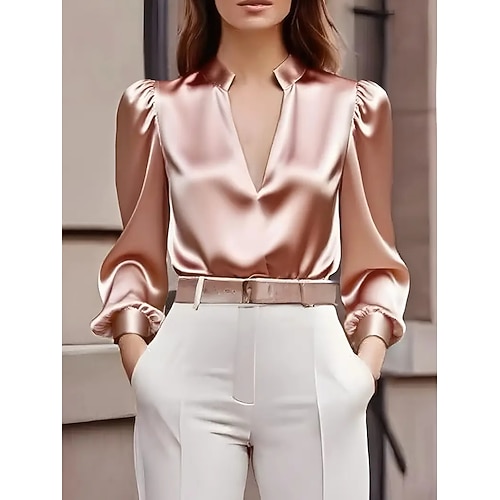Per donna Camicia Elegant Elegante Raso/Satin Semplice Quotidiano Scollo a V Top Regolari Nero Bianco Rosa Autunno