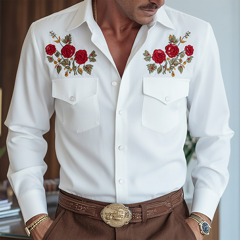 Men's Floral Print Flowers Shirt Western Shirt Cowboy Shirt Long Sleeve Vintage Retro Outdoor Casual WorkWear Spring Fall Turndown Front Two Pockets Linen Like Shirt Button Up Shirts White Blue Dark