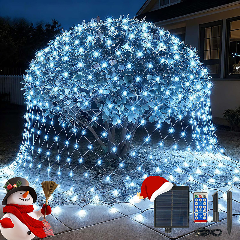 1 Pack Solar Net Mesh String Lights, Waterproof, 672/192/96 Light Bubbles, 8 Lighting Modes, For Indoor Outdoor, Curtain, Tree, Bush, Party,Wedding, Fairy, Wall Decoration