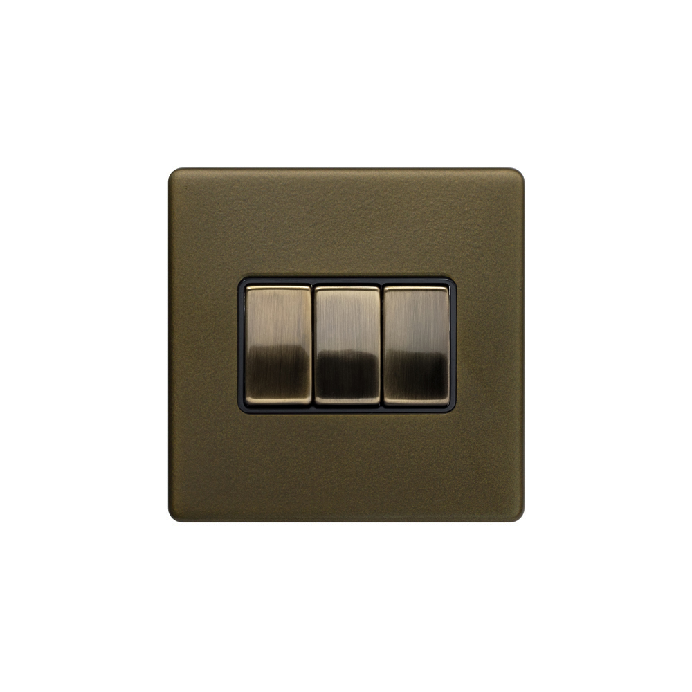Soho Lighting Antique Brass 3 Gang Intermediate switch blk Ins Screwless - Size: 86mm x 86mm x 4.5mm