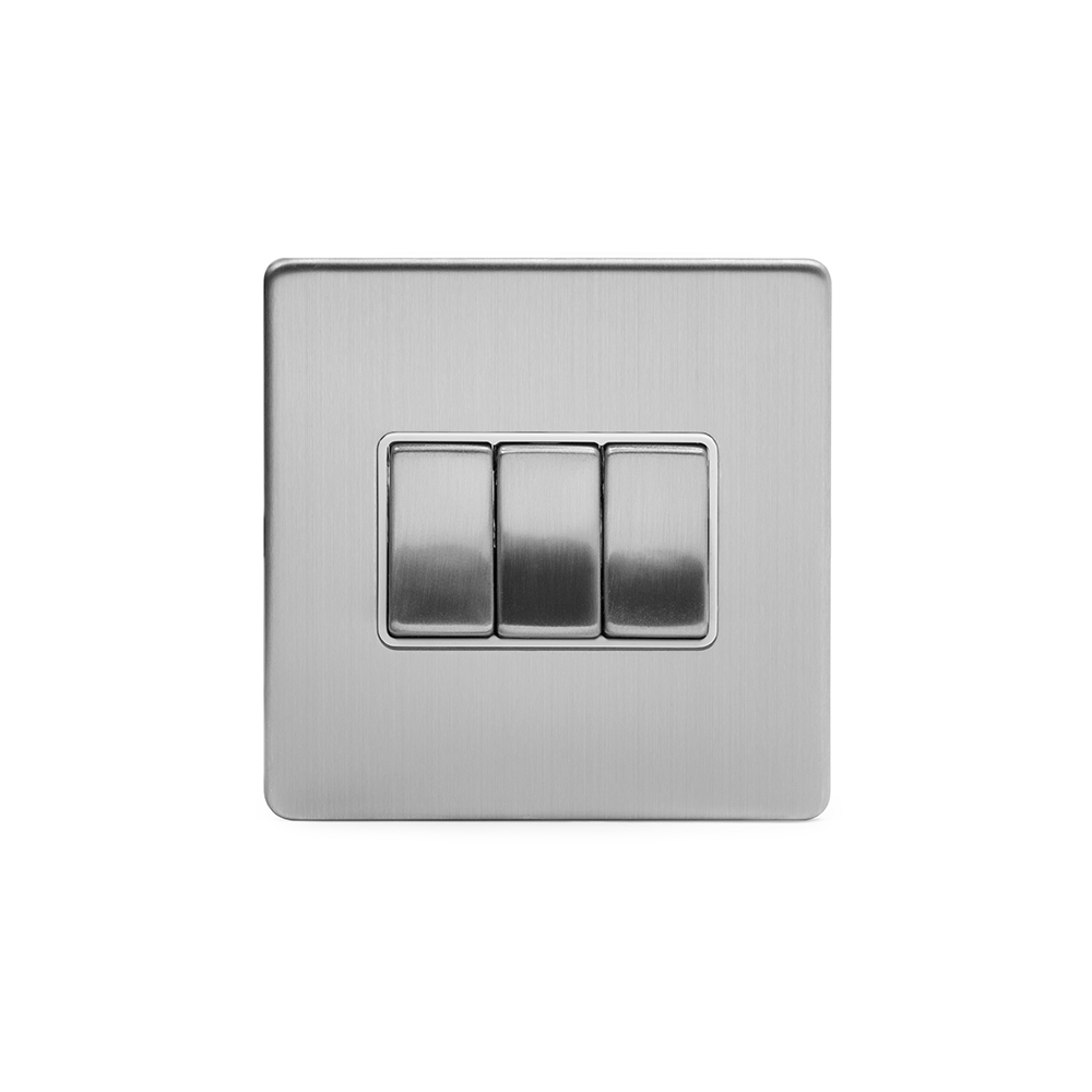 Soho Lighting Brushed Chrome 3 Gang Intermediate switch Wht Ins Screwless - Size: 86mm x 86mm x 4.5mm