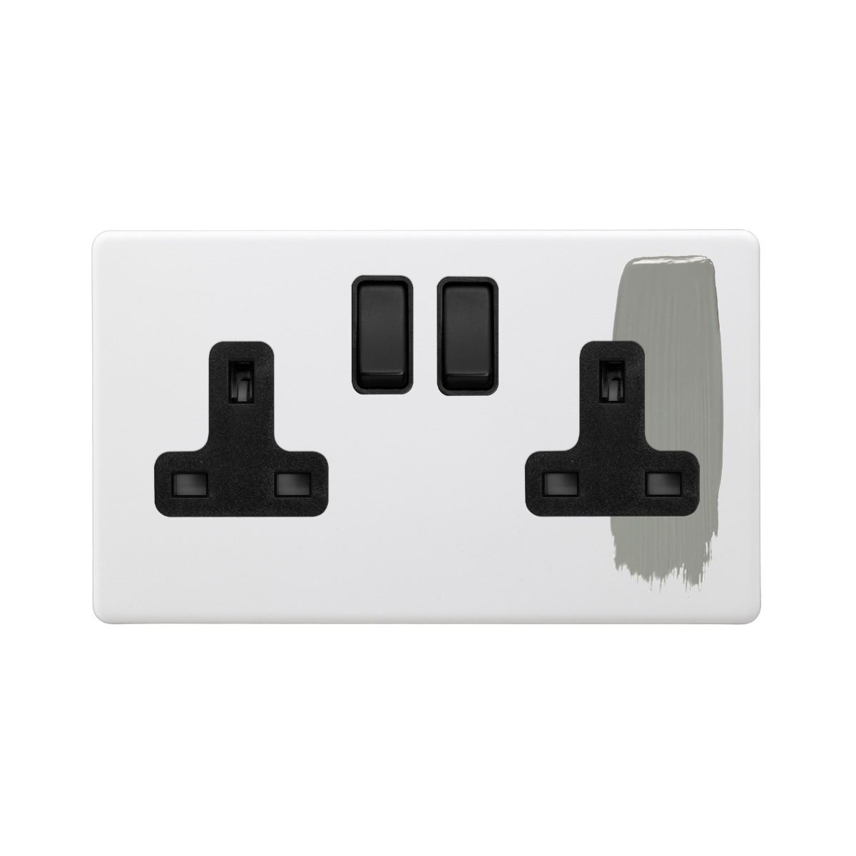 Soho Lighting Primed Paintable 2 Gang Socket 13A Double Pole with with Matt Black Switch - Size: 86mm x 146mm x 4.5mm
