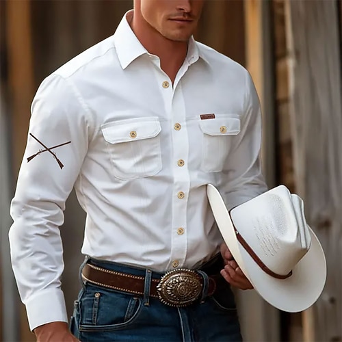 Per uomo Frecce incrociate Camicia da lavoro Camicia Western Camicia cargo Manica Lunga Pantaloni Tattici Vintage Retrò Sport all'Aperto Abbigliamento da lavoro Primavera Autunno Collo ripiegato Due
