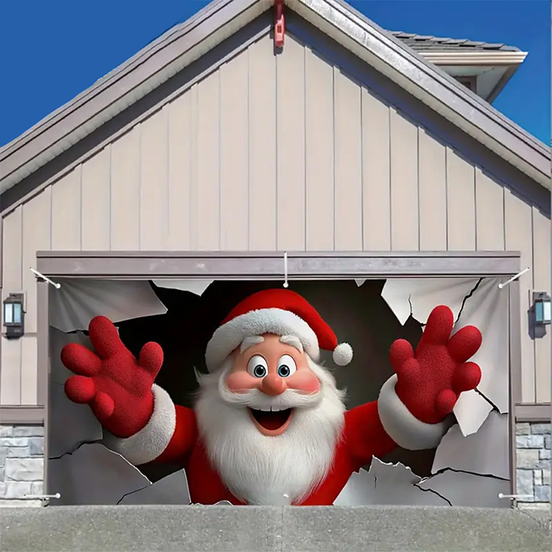 Christmas Tapestry Garage Door Cover Large Hanging Backdrop Santa Claus Cute 3D Party Outdoor Holiday Shooting Backgrounds Yard Home Decor