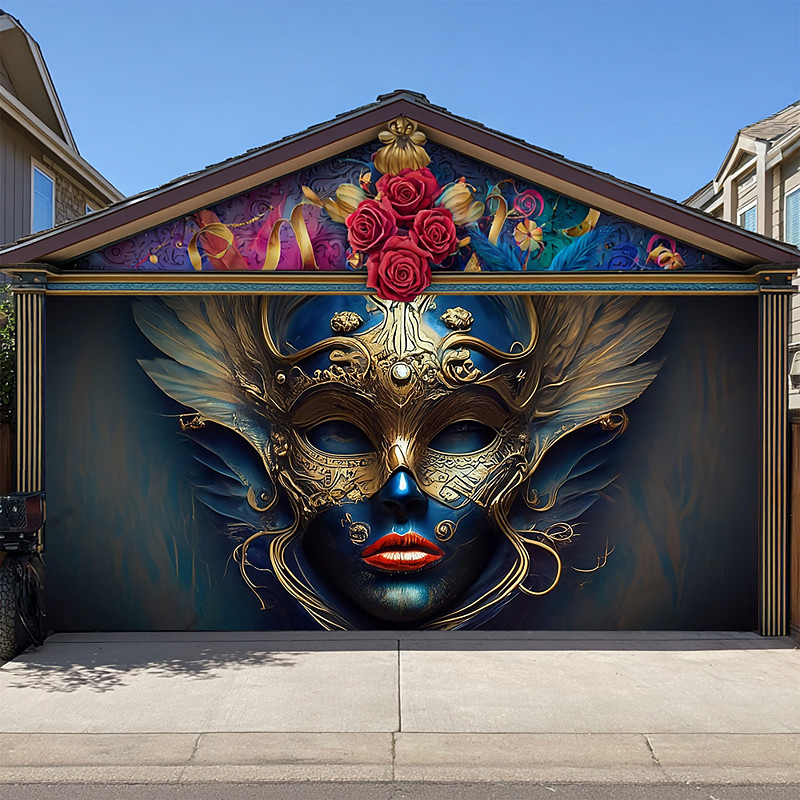 Mardi Gras Garage Door Cover Large Hanging Backdrop Car Mask Feather Luxury Modern 3D Party Outdoor Shooting Backgrounds Front Door Masquerade Home Decor