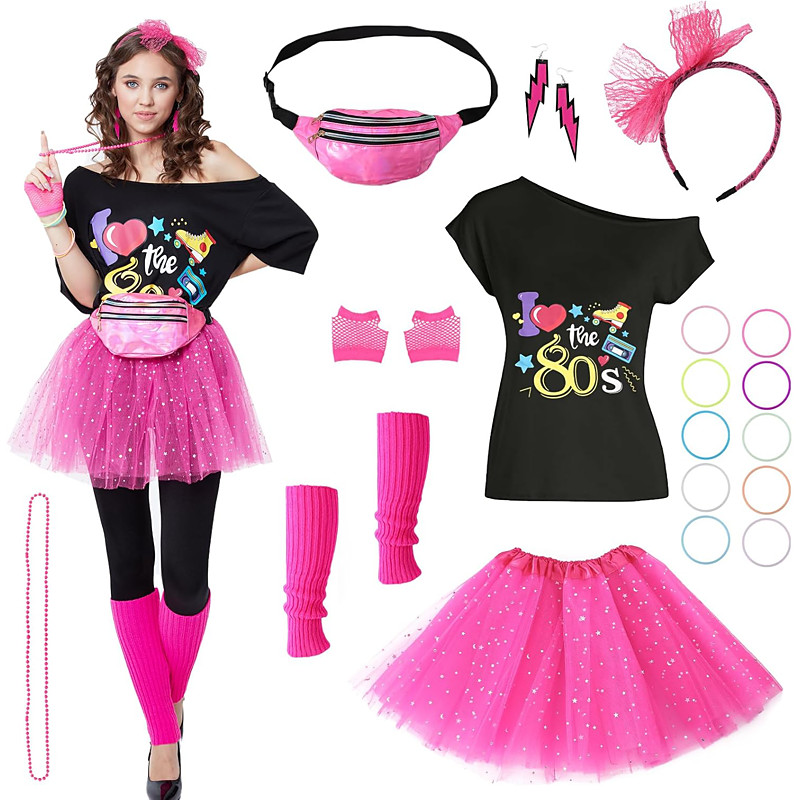 Karneval 2026 Karnevalskostüm Karneval T-Shirt Zubehörset Retro Vintage 1980er Erwachsene Damen Halloween Karneval Maskerade Party / Abend Pride Parade Pride-Monat Einfaches Karnevalskostüm Verkleiden