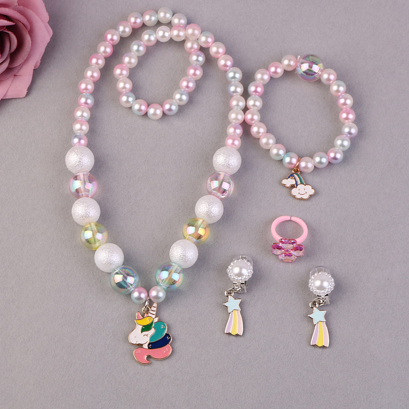 Princess Unicorn Necklace Rainbow Earings Gauntlets Jewelry Set Holiday Girls' Movie Cosplay Outfit Costume Party Christmas Halloween Children's Day World Book Day Costumes