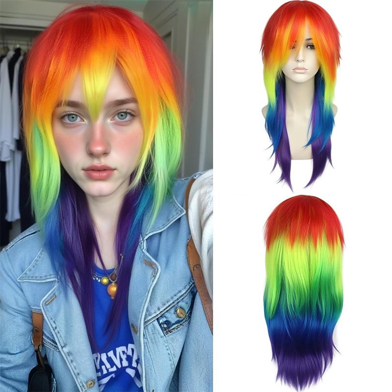Carnival Wig Red Blue Green Straight Long Synthetic Festival Wig Mardi Gras Parade Cosplay Costume Hair for Women