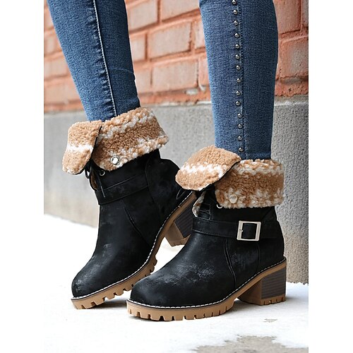 Per donna Stivali Stivali da Neve Stivali con Lacci Stivali Invernali Natale Quotidiano Foderato in Pile Tronchetti Tacco basso Punta Tonda Casual Pelliccia Sintetica Tessuto Mocassino Nero Rosa Rosso