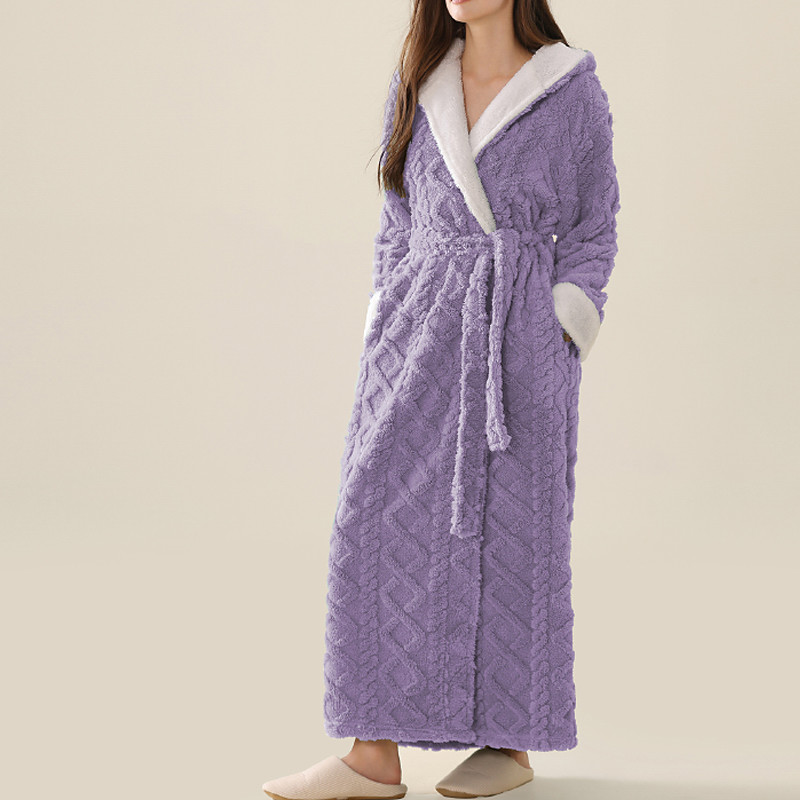 Women's Pajamas Robe Flannel Fashion Casual Wearable Blanket Hoodie Pure Color Pocket Vacation Home Daily Long Sleeve Hoodie Blue Pink Purple Green Gray Fall Winter Tailored Fit