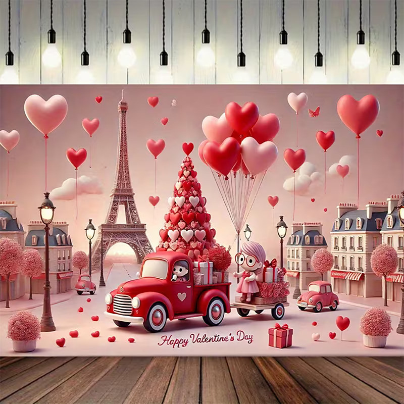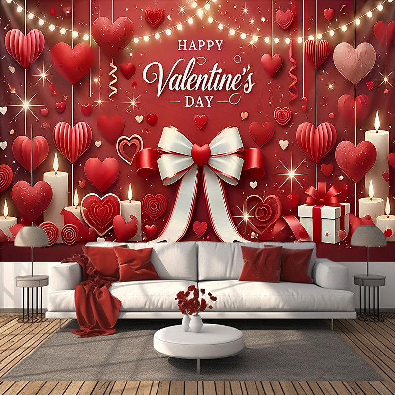 Valentine's Day Tapestry Banners Blanket Rose Love Heart Cute Romantic 3D Party Living Room Shooting Backgrounds Marriage Proposal Decoration Home Decor