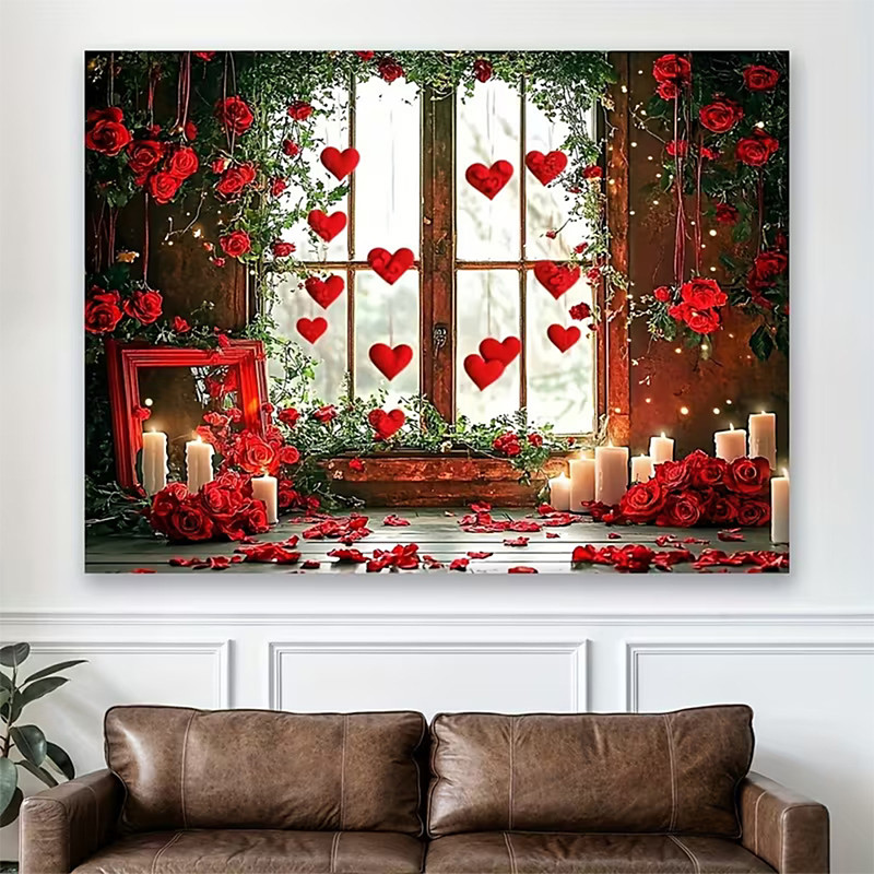 Valentine's Day Tapestry Banners Blanket Rose Window Love Heart Cute Romantic Modern Party Living Room Shooting Backgrounds Marriage Proposal Decoration Home Decor