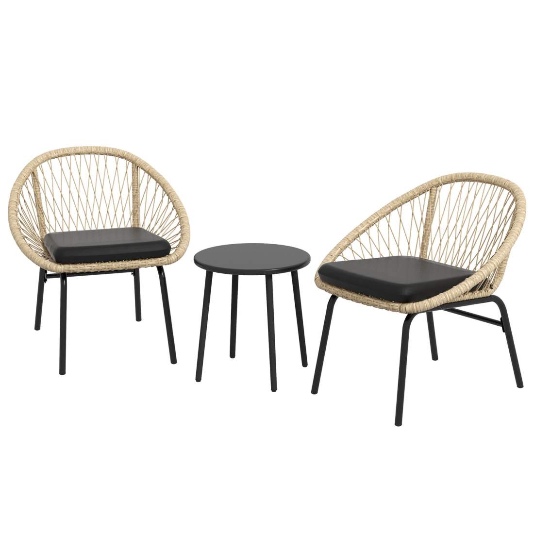 vidaXL Matgrupp för trädgården 3 delar PVC-rotting svart
