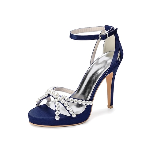 sandali da donna con tacco alto e cinturino alla caviglia in perle argentate, eleganti scarpe da sposa per matrimoni in città