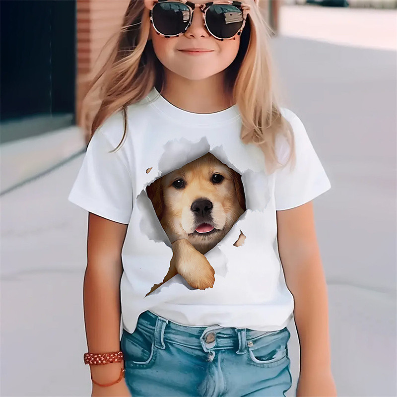 Girls' 3D Cat Tee Shirts Short Sleeve 3D Print Summer Active Fashion Cute Kids 3-12 Years Crew Neck Outdoor Casual Daily Regular Fit