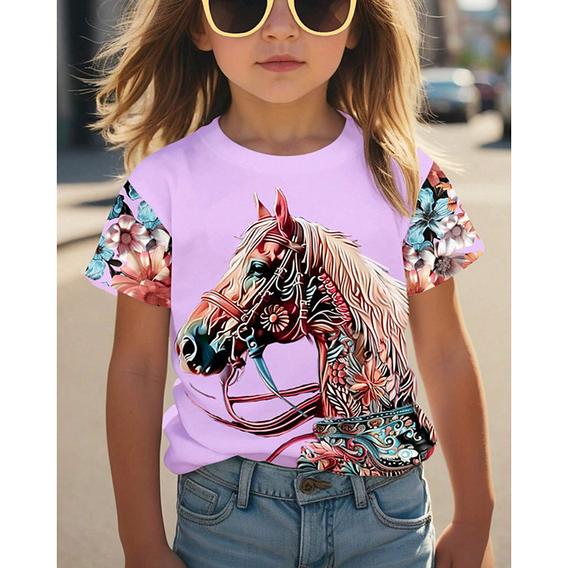 Girls' 3D Graphic Horse T shirt Tee Short Sleeve Summer Spring Fashion Basic Kids 4-12 Years Crew Neck Casual Daily Outdoor Regular Fit