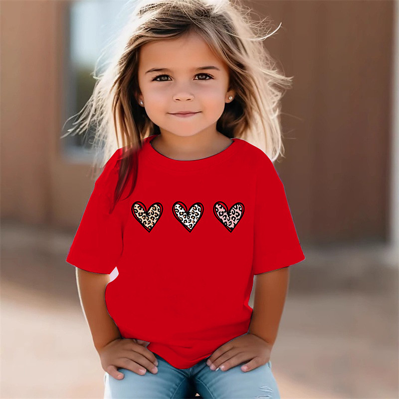 100% Cotton Kids Girls' White Red Heart T shirt Tee Crew Neck Short Sleeve Daily Outdoor Vacation Classic Casual Print Summer