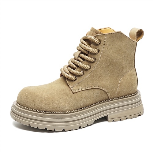 stivaletti da uomo in pelle scamosciata con suola spessa – stivali casual con lacci per l'outdoor streetwear autunnale e invernale