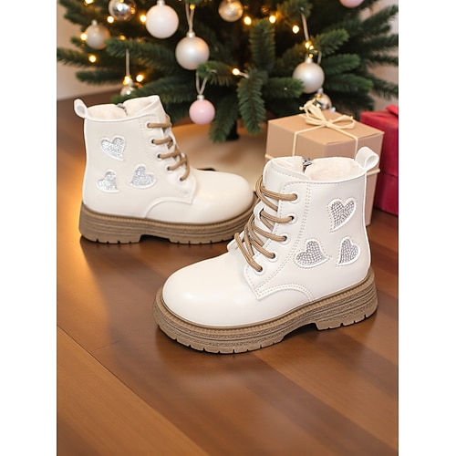 stivali in pelle per bambini decorati con cuori natalizi e lacci rossi: comode calzature invernali per il divertimento delle feste