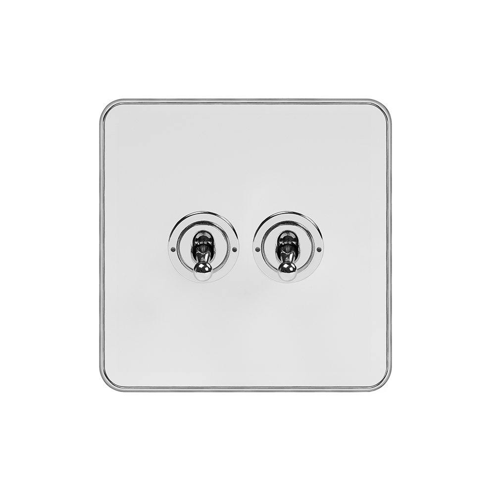 Soho Lighting White & Polished Chrome With Chrome Edge 20A 2 Gang 2 Way Toggle Switch Screwless - Size: 90mm x 90mm