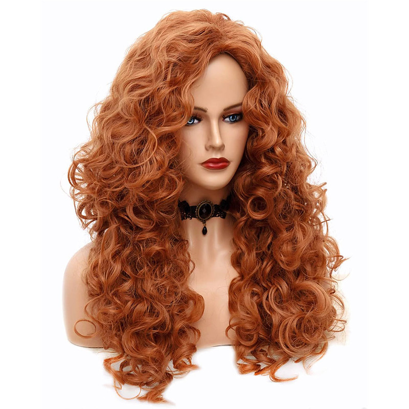 Long Wavy Wigs 28 Inches Natural Copper Fox Red Synthetic Kinky Curly Hair Wig for Women
