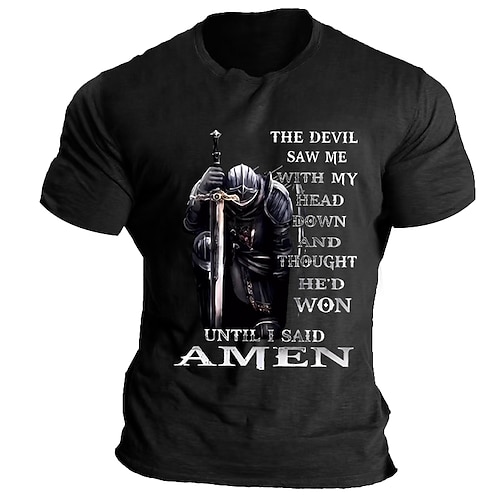 Herren Kurzarm Grafik T-Shirt Ritter Zitat Der Teufel sah mich... Amen Glaubens Resilienz Motivation